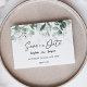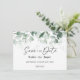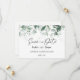 Este moderno plano verde branco salve a design do cartão de data apresentando fácil mistura e combina estilos coordenadores em preto e branco com delicados elementos verdes, acrescentando um florescimento gracioso em torno de uma simples tipografia sofisticada e um belo roteiro de caligrafia mínimo. A aquarela eucalipto e outras folhas botânicas se espalham lindamente, com a esmeralda escura esmaecendo em um efeito sombrio em verde-menta claro - para adicionar apenas um toque clássico de natureza rústica a um pano de fundo contemporâneo neutro. Esta coleção maravilhosa criaria perfeitamente um ar de elegância polida para o seu casamento formal ou casual de sonho ou outro evento especial. Tal como acontece com todos os nossos designs, se tiverem perguntas ou pedidos especiais, por favor contactem-nos.