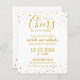 Ouro Aniversário convidado com o confete dourado e aplauso a 50 anos de tipografia em fundo negro. Personalize os convites em preto e ouro com detalhes.