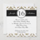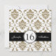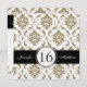 Damasco preto, Dourado e branco Doce Dezesseis Convites de Aniversário. Layout Design de Elke Clarke ©2012. Gráficos licenciados.Personalize com seus dados de festa de aniversário 16ª e informações pessoais. Este convite de 16 anos é uma maneira fabulosa de anunciar as celebrações de 16 anos da sua filha.