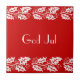 design festivo, vermelho e branco, com colheres brancas. Vem com o texto "Deus Jul" - significa feliz Natal em sueco e em outras línguas escandinavas também. Você pode personalizar este azulejo cerâmico agora com seu próprio texto.