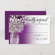 Esta placa na moda RSVP apresenta luzes de cordas brilhantes com um cheio de jarro de pedras delicadas Flores de Respiração do Bebê em um fundo violeta roxo profundo. Perfeito para casamentos no inverno, casamentos de outono ou outono, aniversários de marcos ou qualquer ocasião especial. Convidado de casamento. Entre em contato comigo para obter mudanças de cor, flores diferentes ou solicitação especial em cheryl@cheryldanielsart.com. Cheryl Daniels © 2016.