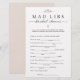 Bridal Shower Mad Libs Party Game Card