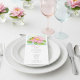 This bridal shower menu features a graceful pink waterlily in full bloom, symbolizing love, new beginnings, and the beauty of a shared future. A red eyed tree frog adds a touch of gentle wonder and joyful charm, bringing warmth and happiness to the design. Thoughtfully created for this special celebration, the artwork provides a peaceful and romantic accent as family and friends gather to enjoy a lovely meal while honoring the bride to be and celebrating the joyful journey ahead.