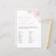 A classic bridal shower word scramble game with a romantic winter twist. Designed in soft pink with snowflake accents, this game is perfect for entertaining guests at a Pink Snow in Love bridal shower.
