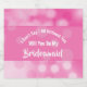 Que melhor maneira de se propor às suas madrinhas do que uma garrafa de sua bebida favorita, vinho/vinho espumante com esta etiqueta especial "Eu não posso dizer que eu faço sem você, você será minha madrinha" em uma moderna borbulha rosa e branca, efeito brilho bokeh. Pode adicionar um nome pessoal, se necessário, mas observe que todos os rótulos mostrarão esse nome.