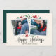 Cartões com fotos elegantes e festivos fotografam duas de suas fotos quadradas favoritas com uma sutil borda decodificada e folhagem vermelha e verde de feriado nos cantos, em um fundo de marfim macio. "Felizes Feriados" aparece na parte inferior do roteiro de caligrafia negra, com seus nomes e o ano abaixo.