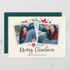 Cartões com fotos elegantes e festivos fotografam duas de suas fotos quadradas favoritas com uma sutil borda decodificada e folhagem vermelha e verde de feriado nos cantos, em um fundo de marfim macio. "Feliz Natal" aparece no final do livro de caligrafia negra, com seus nomes e o ano abaixo.