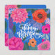 Linda mão pintou flores silvestres, cor-de-rosa e flores laranja profundas em um fundo azul elétrico. Arte original de Caroline Bonne Müller