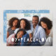 Compartilhe a sua foto favorita neste cartão festivo de férias, sobreposto com "alegria, paz, amor" em letras brancas de recorte. Personalize com seus nomes e o ano abaixo.