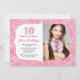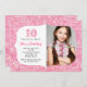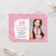 Este convite moderno e bonito é ideal comemorar a festa de aniversário de uma menina. Caracteriza o número "10", um fundo cor-de-rosa do brilho e um quadro ornamentado que inclua a imagem da menina do aniversário. Ideal feminino do design para um evento chique. Adicione seus próprios imagem e fraseio.