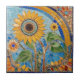 "flores de girassol amarelas", "girassóis em verde escuro", "turquesa verde-laranja, "mosaico de estilo gaúcho", "design de van gogh inspirado", "jardim de verão", "cabeça de flor decorativa", "azulejo de cerâmica floral ornamental", "verão alegre e colorido", "azul-céu divertido"