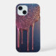 Brilho rosa cintilante derrete em gotas brilhantes sobre um fundo azul, combinando centelhas estelares e texturas de tinta líquida para um visual glamoroso, sonhador e fantástico abstrato adequado para projetos de beleza e luxo.