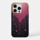 Brilho rosa cintilante derrete em gotas brilhantes sobre um fundo escuro, combinando centelhas estelares e texturas de tinta líquida para um visual glamoroso, sonhador e abstrato adequado para projetos de beleza e luxo.