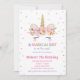 Convite de aniversário bonito do unicórnio, caracterizando um unicórnio bonito e uma tiara floral bonita.  Aperfeiçoe para toda a idade!