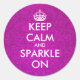 Brilhante cor-de-rosa, mantenha-se calmo e acenda os adesivos. Redonda Manter Calmo e carregar em adesivos com textura de fundo brilhante. Design personalizável com faíscas brilhantes e brilhos brilhantes. Modelo de tipografia Vintage Keepcalmandcarryon com coroa. Crie sua própria paródia engraçada. Engraçado como etiqueta de favor de casamento ou como selos de envelope/vedantes.