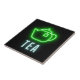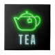 Design de azulejo decorativo divertido apresenta bule verde neon com texto neon "Tea" sobre fundo preto