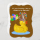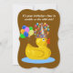 Faça o aniversário de alguém especial com este cartão de aniversário hilário de pato de borracha! Apresentando um pato amarelo festivo em uma festa colorida cercada por balões, esta carta é perfeita para adicionar um toque de diversão e riso ao seu grande dia. conteúdo generativo.