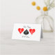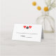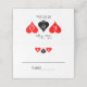 Diversão de Las Vegas sonha com cartões de casamento para uma recepção elegante. Cartões de lugar dobrados pelo vazio com noiva e design de logotipo groom. Perfeito para uma festa de casamento fantástica na cidade de Sin. As cores do traje preto, branco e vermelho. Símbolo de corações e espadas com monograma. Parte do conjunto glamouroso de coleção com decoração de mesa e papelaria correspondentes. Simples adicione suas próprias iniciais para personalizar esses modelos populares.