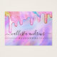 Este cartão de exposição de brincos pendentes feminino e glamoroso é a maneira perfeita de estilizar sua embalagem e adicionar seu próprio charme e personalidade. Ele apresenta gotas de glitter grossas falsas impressas e cintilantes em cores de arco-íris de unicórnio sobre um fundo iridescente holográfico. A tipografia é um script cursivo elegante com uma fonte serifada moderna para combinar. A paleta de cores inclui rosa, pêssego, azul, roxo, amarelo e coral. É chique, bonito, único e luxuoso; a maneira perfeita de divulgar seu negócio e estilizar seu material de marketing e propaganda para seus clientes. (os furos dos brincos são apenas marcadores impressos, a perfuração deve ser feita pelo cliente)
