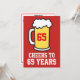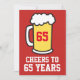 Brindando a 60 Anos convite de festa de cerveja para um aniversário de 65 anos. É um fundo vermelho com uma imagem de uma grande cerveja. Ótimo para um amante de cerveja que está fazendo sessenta e cinco anos. Brinde a alguém que está celebrando 65 anos!