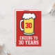 Convite de festa de cerveja para os 30 anos, um marco de aniversário de 30 anos. É um fundo vermelho com uma imagem de uma grande cerveja. Ótimo para um amante de cerveja que está fazendo trinta anos. Levante um brinde a alguém que está celebrando 30 anos!