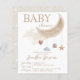 Um convite para o chá de fraldas da lua russa. Marrom claro neutro adequado para ambos os gêneros.