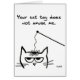 Você comprou lotes de brinquedos do gato para manter o gato irritado feliz. O problema? Conseguindo o jogar realmente com eles. Os proprietários do gato irritado recorrem a todos os tipos da adulação, incluindo bonking o certo na cabeça com o brinquedo. A reação do gato irritado? Não é divertido. O cartão perfeito para proprietários do gato, amantes do gato, um veterinário, um baby-sitter do animal de estimação, uma cara do gato, ou uma senhora louca do gato. De facto, apenas para qualquer um que precisa um riso. Você pode ver mais de meu design irritado do gato em minha loja de Zazzle aqui: http://www.zazzle.com/funkychicdesigns