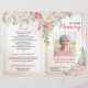 O programa de serviço funerário rosas cor-de-rosa é impresso em papel de alta qualidade. Todo o conteúdo do design do programa (texto e imagens) pode ser personalizado para atender às suas necessidades. Você pode adicionar, editar ou excluir conteúdo usando o editor on-line antes de fazer o pedido. O programa memorial é impresso em papel impresso à frente e atrás.
