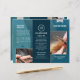Uma brochura moderna e na moda azul triplicada para salões de cabelo e barbearias. Um elegante design de escolha de folheto de serviço de salão para comercializar seus serviços e atrair o mercado de audiência para gerar vendas. É um design totalmente personalizável e você pode editar o texto para compartilhar seus detalhes comerciais.
