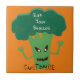 Brócolis assustador dizendo Coma seu brócolis ou então! para personalizar com nome ou alterar a cor de fundo