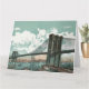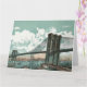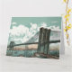 A icônica Ponte Brooklyn! Esta estrutura espantosa é apresentada num cartão publicitário de uma máquina de costura do final do século XIX. Ele foi limpo e "consertado" e seu agradável céu azul com nuvens proporciona bastante espaço para personalização. O impressão apresenta um padrão maleável característico da impressão cromolitiográfica. O fundo foi iluminado a um branco de casca de ovo para elogiar melhor a decoração moderna.