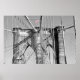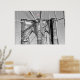 Ponte Brooklyn em preto e branco com bandeira americana em cor.