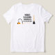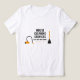 Uma t-shirt que ilustra uma vassoura e um vácuo, para anunciar a sua empresa quando trabalha. Vem com texto, número de telefone e três estrelas, todas design estão em cores preta e laranja. Perfeito para atividades como serviços profissionais de limpeza de casas, faxina, empregada, etc.