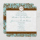 Damasco castanho no Convite para Casamento vintage Elegante Monograma Azul de Piscina Profunda