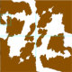 Brown e o design branco do tecido com vaca imprimem o teste padrão. O impressão do tecido do divertimento, de que olharia grande como coxins ou cortinas.