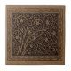 Este belo design de artes e artesanato é uma imagem de reprodução fotográfica de uma floral de couro ferramentas que mostra pílulas giratórias de folhas florais, em castanho e preto. O padrão floral é do final dos anos 1800.