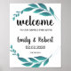 Você pode receber seus convidados para o seu casamento com nossa poster de Folhagem Abundante. Esta poster é verde-botânica de cor aquosa e folhas de eucalipto, com "bem-vindos a nossa felicidade para sempre". Seus nomes e data de casamento em um tipo de caligrafia.