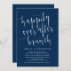 Este é um convite de casamento moderno em azul-marinho editável, cartão de convite de casamento fuga (Brunch do Felizes para Sempre). Um cartão perfeito para convidar sua família e convidados queridos para o anúncio do seu casamento fuga, celebração da festa de recepção. Adicione os detalhes da sua celebração na fonte / letra correspondente.