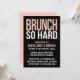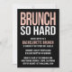 Se você tivesse preferencialmentes de mimosas que doses de tequila para sua festa de solteira, esses convites são para você. Design apresenta um fundo preto surpreendente com "Brunch So Duro" em tipografia moderna, rosa-claro e branco. Também disponível em aqua leve: