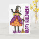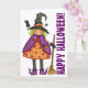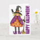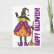 Bruxa com vassoura desejando um Feliz Dia das Bruxas.