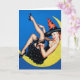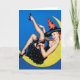 Garota do Pin-Up vestida como uma Bruxa sentada no Cartão de Saudação do Dia das Luas, dentro de vazio para que você possa personalizar.