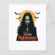 Esta design de bruxa vampira escura e misteriosa captura a essência assustadora do Halloween. Apresentando uma mulher gótica com olhos laranja piercing