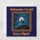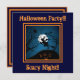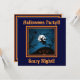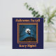 Bruxa E Aranha No Convite Para Festas De Halloween Na Web. Legal convite com bruxa, aranha na teia, árvore assustadora, jack ou lanternas e morcegos sobre fundo azul profundo.