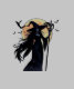 Assuma o poder encantador da noite com este design estonteante com uma bruxa mística de pé sob uma lua de cheio brilhante.