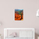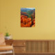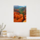 Bryce canyon Utah poster DE 8,99. Bryce canyon não é um desfiladeiro, mas um anfiteatro natural gigante criado pela erosão ao longo do lado leste do Planalto Paunsaugunt. As palavras confundem-se quando não existe qualquer equivalente. Uma caverna sem teto? Uma floresta de pedra? Até mesmo o 'canyon' é enganador, uma vez que Bryce é esculpido por ciclos de congelação, não por um rio. No entanto, "o maior poeta do mundo" não é adequado nem lisonjeiro. O Bryce é distinto por causa de estruturas geológicas chamadas hoodoos, formadas pelo vento, pela água e pela erosão do gelo das rochas sedimentares do rio e do leito do lago. As cores vermelha, laranja e branca das rochas fornecem vistas espetaculares para visitantes do parque. Bryce se senta em uma elevação muito mais alto do que perto do Zion National Park. Espetacular em qualquer época do ano esta maravilha do mundo irá adicionar majestade e profundidade a qualquer sala