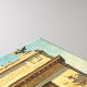 Experience Bucharest's elegant charm in this vibrant impressionist masterpiece. The iconic Triumphal Arch dominates the composition with its cream-colored neoclassical grandeur, adorned with sculptural details and flanked by lush green foliage. Vintage automobiles in crimson, turquoise, and cream line the sun-warmed plaza while elegantly dressed figures in 1950s attire—women in colorful patterned dresses, men in sharp suits—stroll beneath swirling skies of soft blue and gold. Historic buildings in warm terracotta and rust tones frame the scene. Bold brushstrokes celebrate Romanian heritage where architectural splendor meets retro urban vitality.