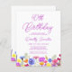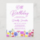 Uma bonito borda de flor silvestre decora o fundo deste convite de festas adulto. Flores roxas, azuis, amarelas e alaranjadas criam um design colorido e feliz para celebrar esse aniversário marco. A caligrafia roxa moderna e simples acrescenta um toque de tendência para mantê-la fresca. O fluxo de letras aberto e livre de atalhos se coordena perfeitamente com as margaridas e as botas. Este convite para aniversário de 40 anos irá dar o tom perfeito, quando os seus convidados o receberem. Escolha encantadora para primavera ou festa de aniversário de verão. Este elemento faz parte da Coleção de Flores Roxas Bonito. Use-o para criar facilmente o pacote de convite para aniversário de 40 anos perfeito e o tema da festa.
