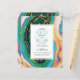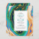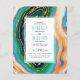 BUDGET Turquoise Blue Agate faz um convite para casamento geode. Um design de casamento moderno e elegante com uma fatia de agata azul e um quadro branco com a sua redação.