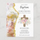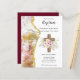Batismo, Christening, 1º convite de comunião santa com uma cruz de ouro sagrado. Campos modelo de texto para ambos os lados para adicionar todos os detalhes do evento especial para filho ou filha.