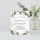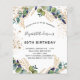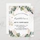 For a 40th (or any age) birthday party. A white background decorated with eucalyptus greenery and golden leaves.Decorated with golden glitter dots. Personalize and add your names and wedding details. Black and golden colored letters.
